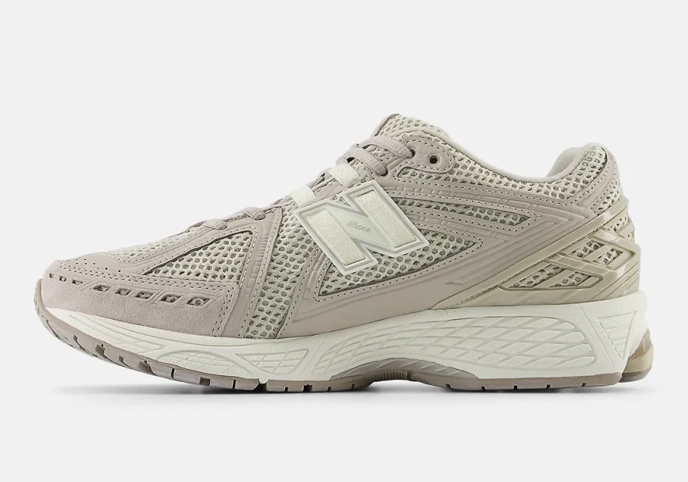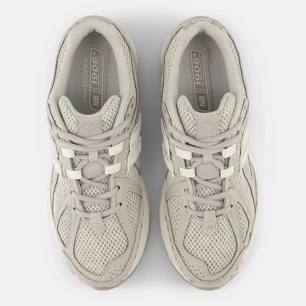 رویهی کفش New Balance 1906 از ترکیب مش (Mesh) با لایههای مصنوعی مقاوم ساخته شده تا علاوه بر تهویهی مناسب، دوام بالا و ساختار محکمتری داشته باشد. طراحی آن به گونهای است که جریان هوا بهخوبی عبور میکند و احساس خنکی در طول روز حفظ میشود.