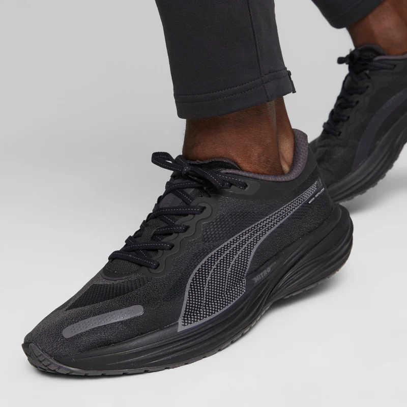 Puma Deviate Nitro 2 Water-Repellent یک کفش رانینگ کربنی با فوم NITRO Elite و رویه مقاوم در برابر آب است که برای تمرینات سرعتی و مسابقه در شرایط آبوهوایی مرطوب طراحی شده است.